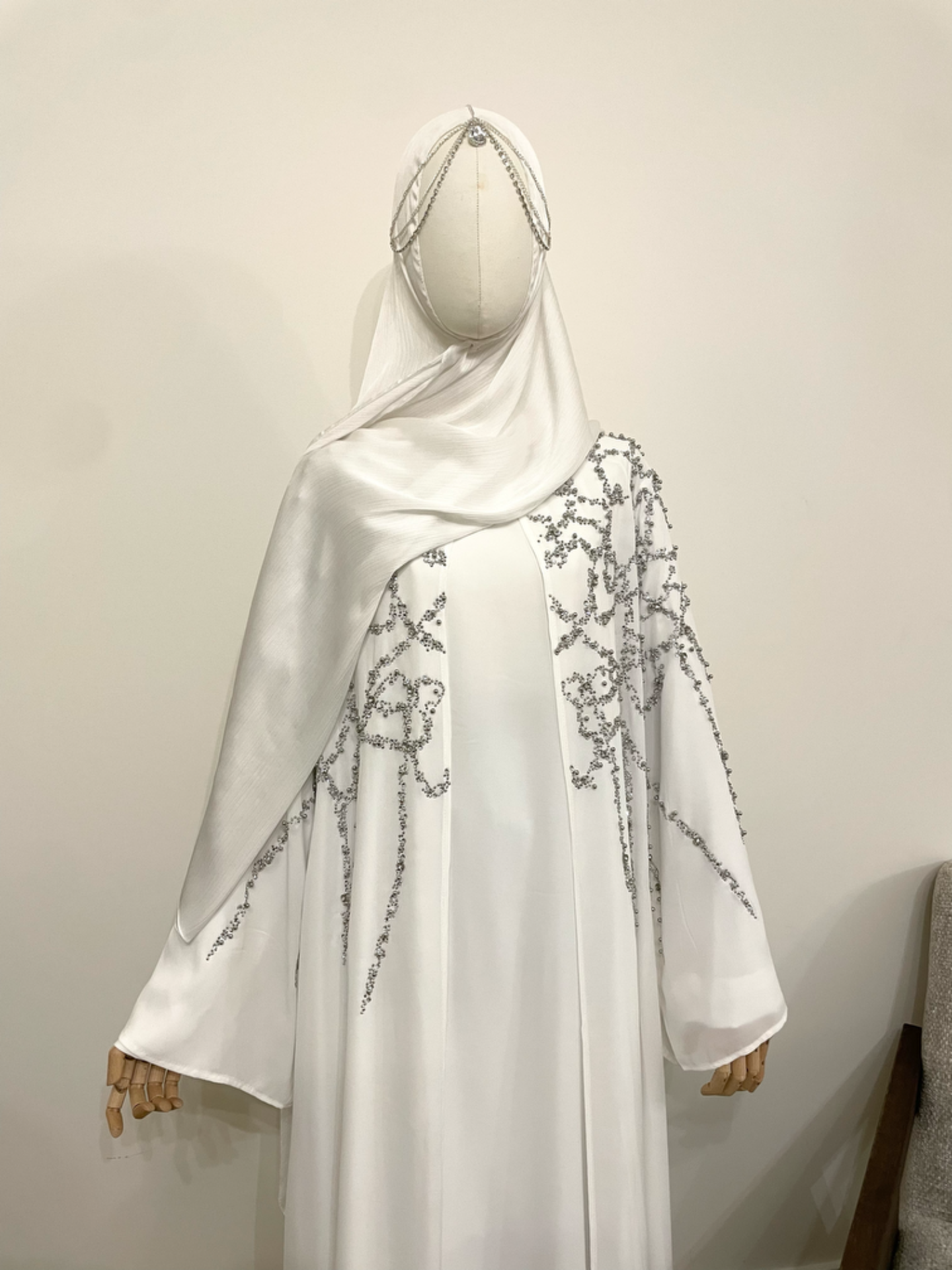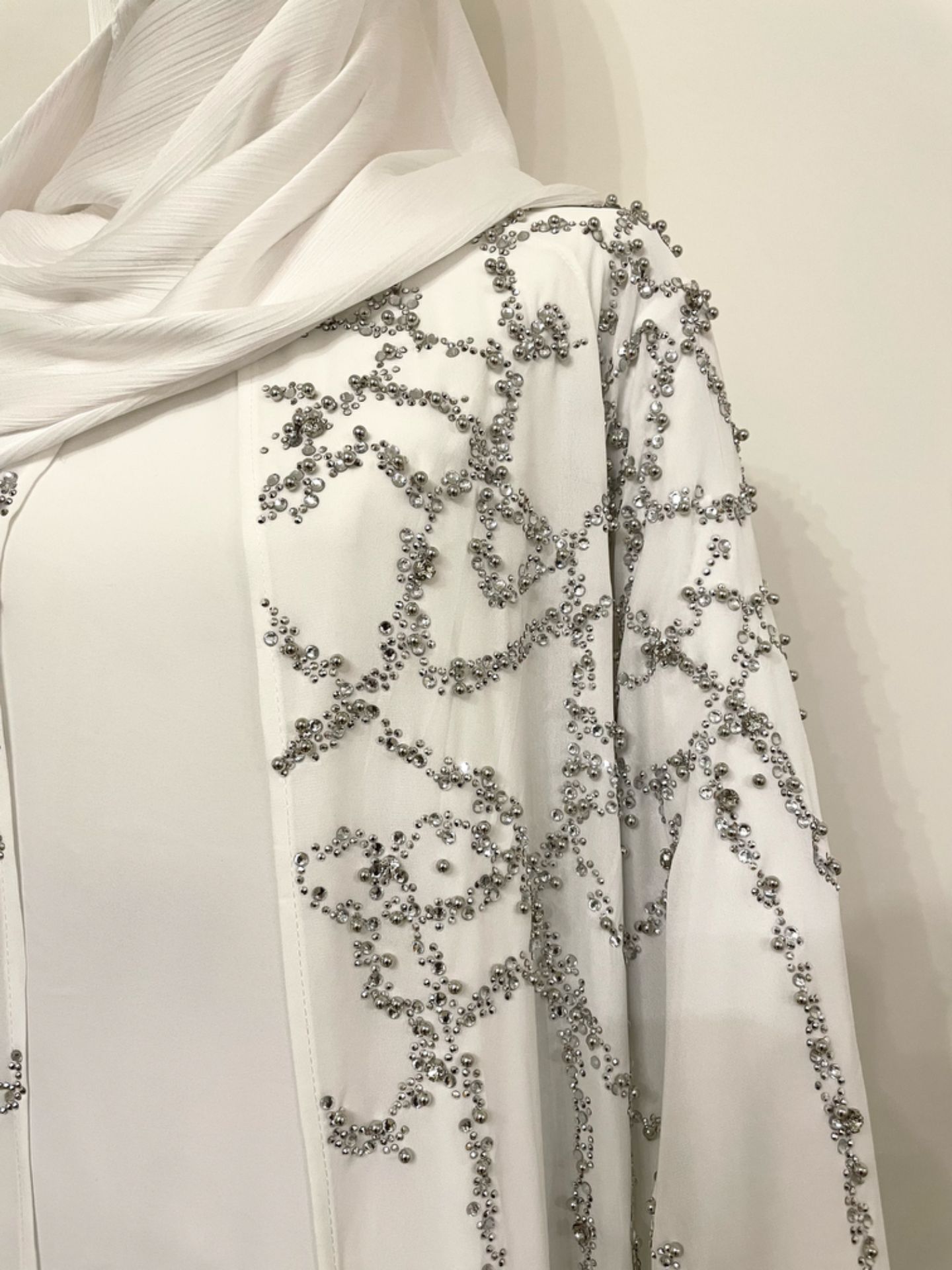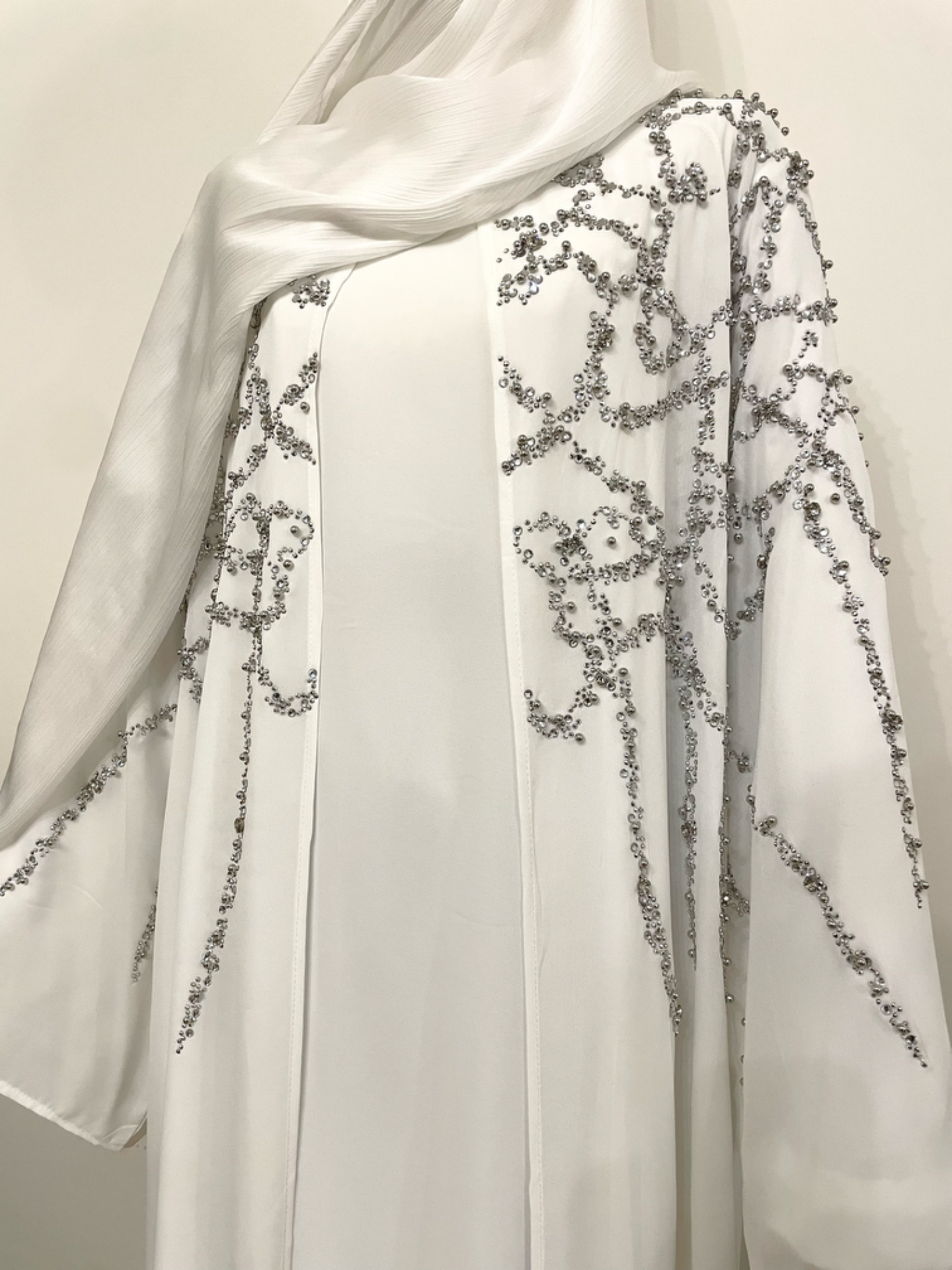 Een tijdloze abaya die elegantie, klasse en comfort moeiteloos samenbrengt — ideaal voor feestelijke momenten, bruiloften en speciale dagen.