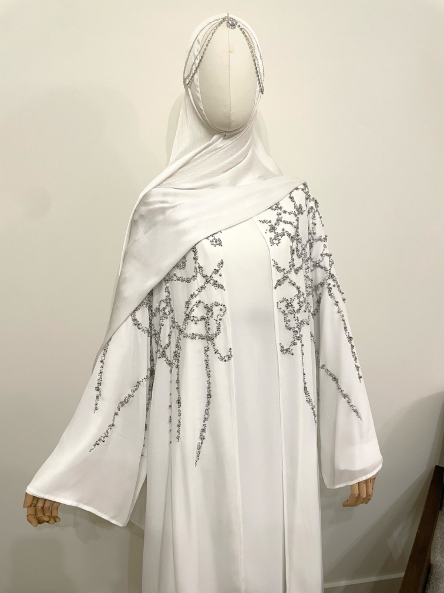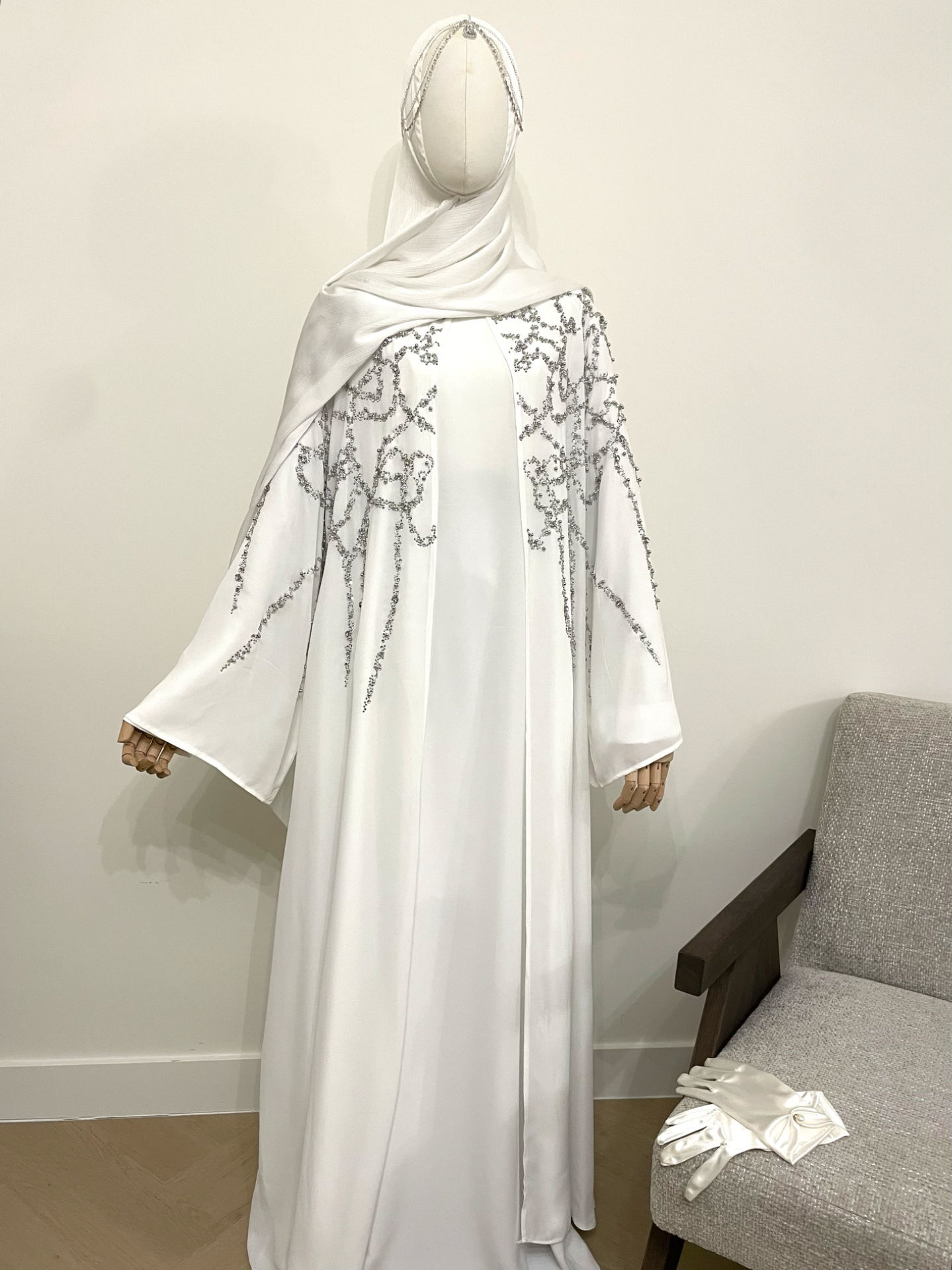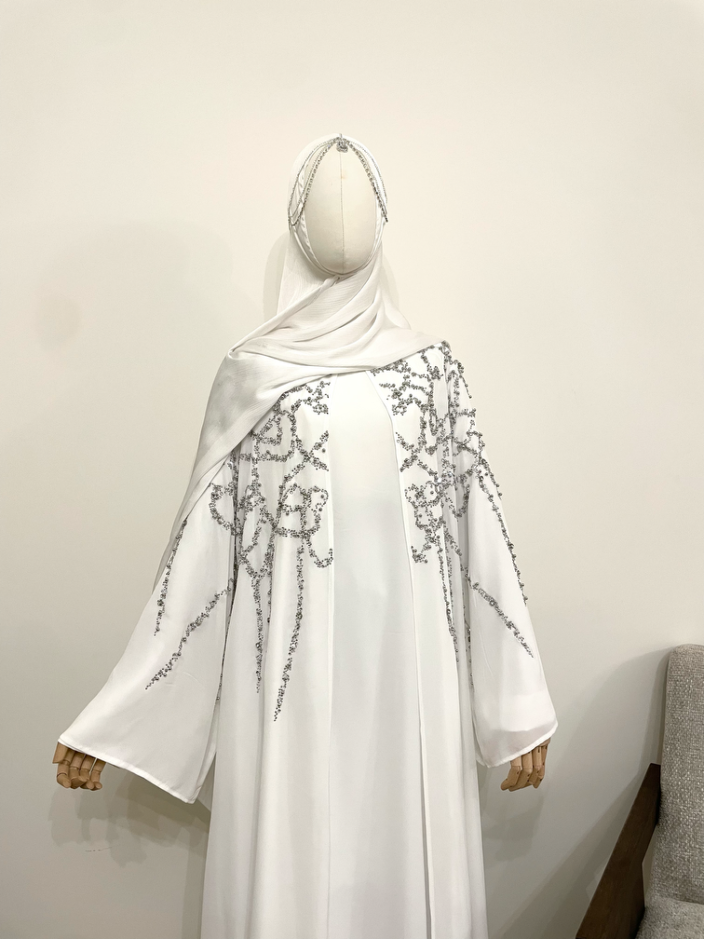 Een tijdloze abaya die elegantie, klasse en comfort moeiteloos samenbrengt — ideaal voor feestelijke momenten, bruiloften en speciale dagen.