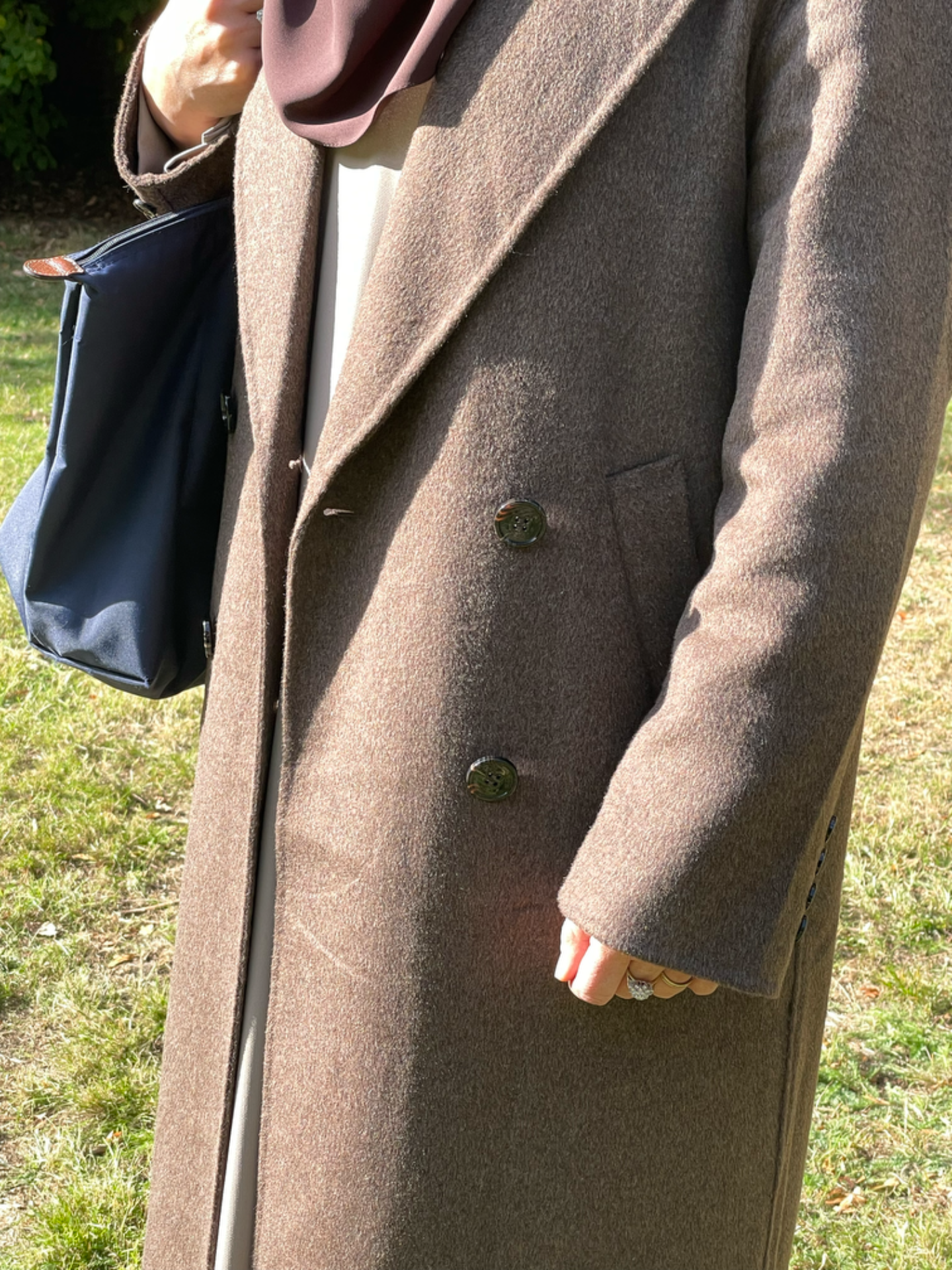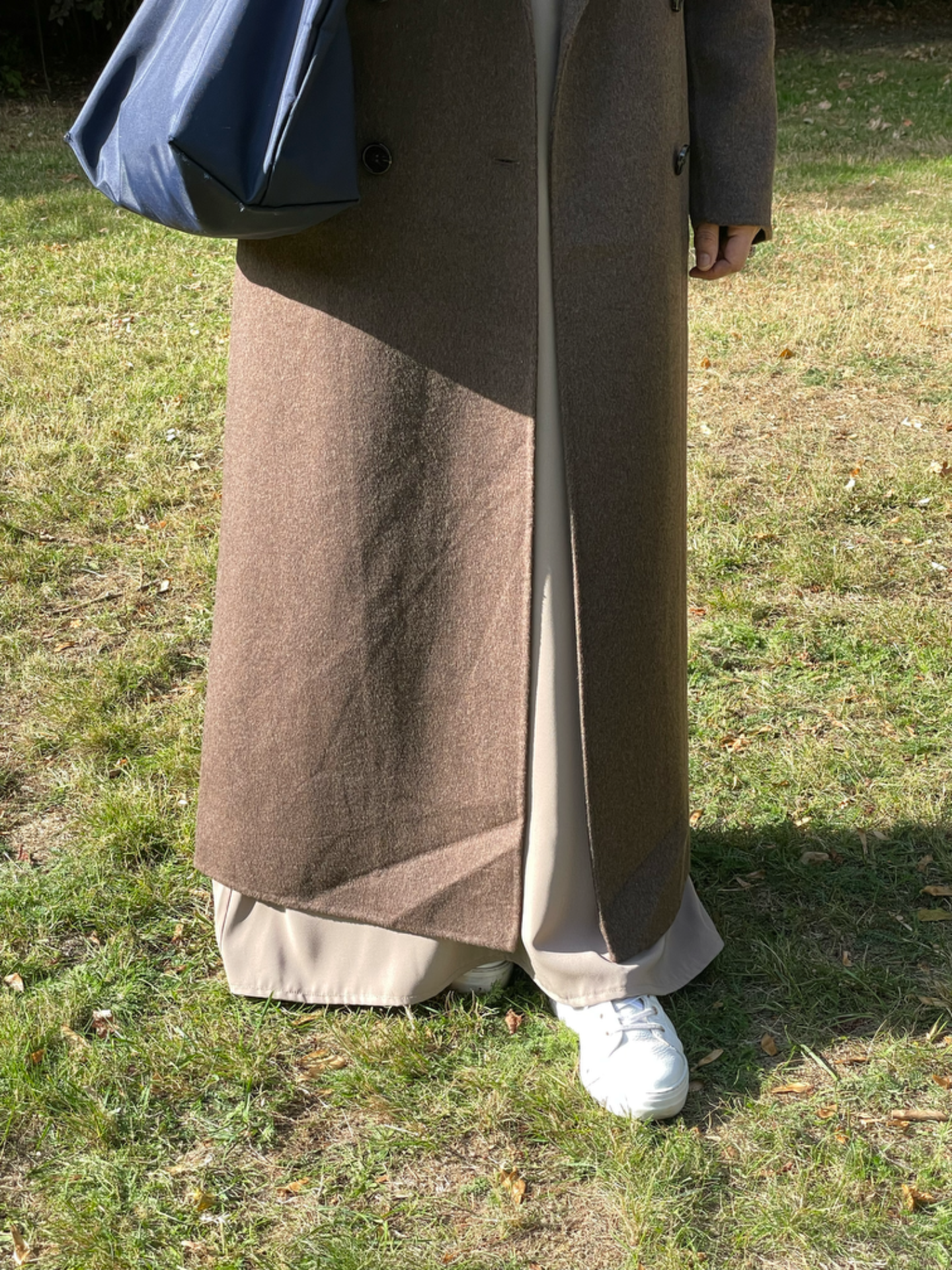 Op zoek naar een tijdloze en chique winteroutfit? Deze elegante, lange jas met reverskraag is zeker een aanrader. Knoopsluiting vooraan, twee zijzakken. Split achteraan. Zonder voering.